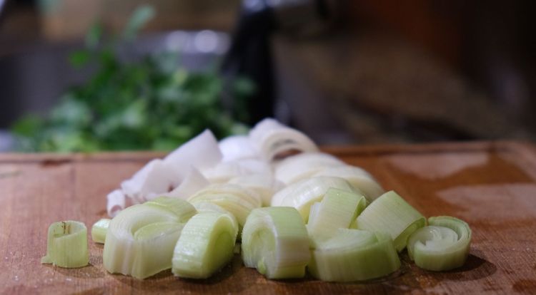 1 – Karotten und Lauch schneiden wir in kleine Stücke bzw. Ringe.