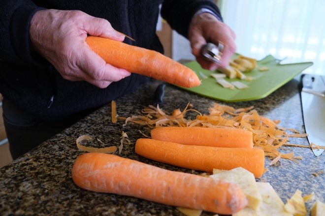 5 – Die gelben Rüben schälen wir und schneiden sie in Ringe.