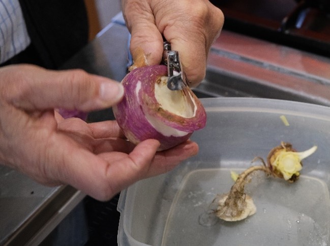 1 – Wir schälen Krautrüben und Kartoffeln.