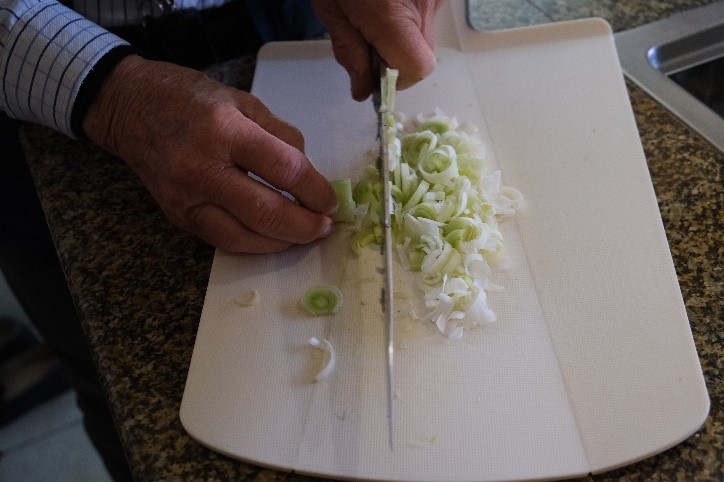 3 – Auch den Lauch schneiden wir in feine Ringe.