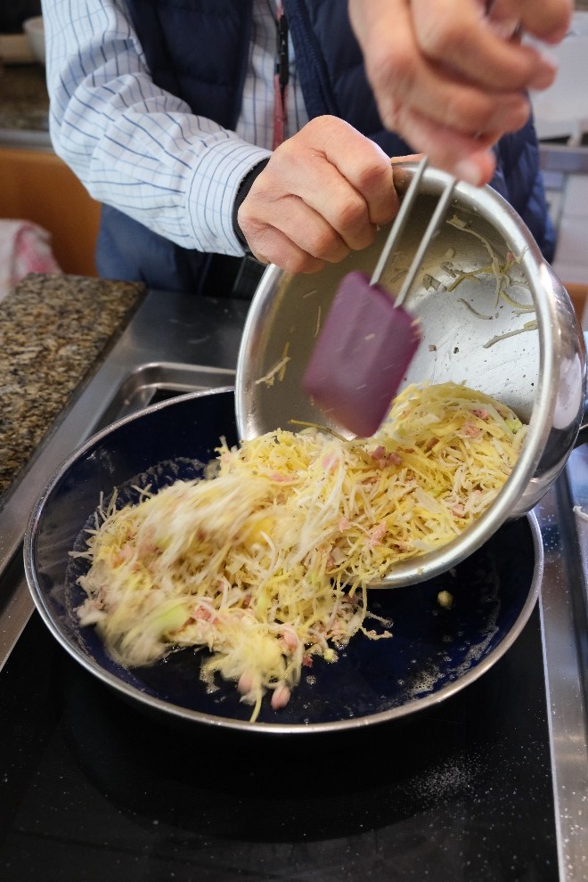 2 – Mit der Röstiraffel hobeln wir Kartoffeln und Krautrüben fein.